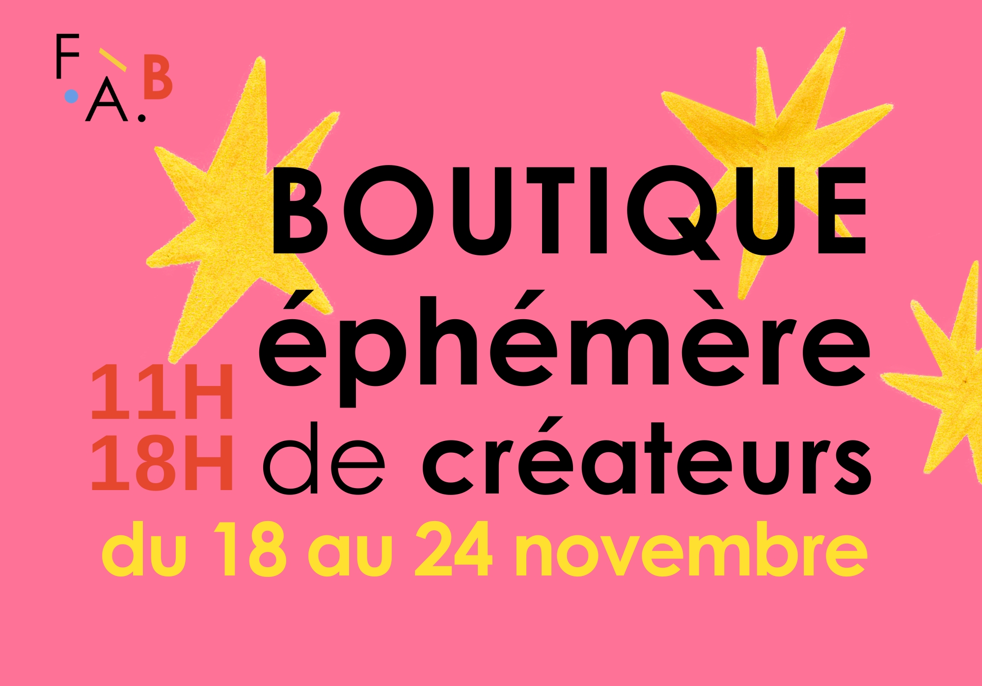 Place du Guignier, 75020 Place du Guignier, Paris, FranceQuatre créatrices du programme d'accompagnement à l'entrepreuneriat pour artisans F.A.B (Faire à Bagnolet) présentent leurs créations au Pop Up Store "Le spOt", placé Place du Guignier dans le 20e arrondissement de Paris. Venez découvrir, de 11h à 19h pendant cette semaine, les objets de déco, les vêtements, sacs à main, bijoux et encore plus, des …